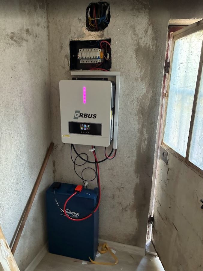 Manisa Saruhanlı Büyükbelen’de bağ evinin tüm elektrik ihtiyacını karşılamak üzere 6 adet 585 W panel, 6.2 kW inverter ve 51.2V 100Ah lityum akü ile tam bağımsız off-grid güneş enerjisi sistemi kuruldu. Sistem şebekeye ihtiyaç duymadan güvenilir enerji sa