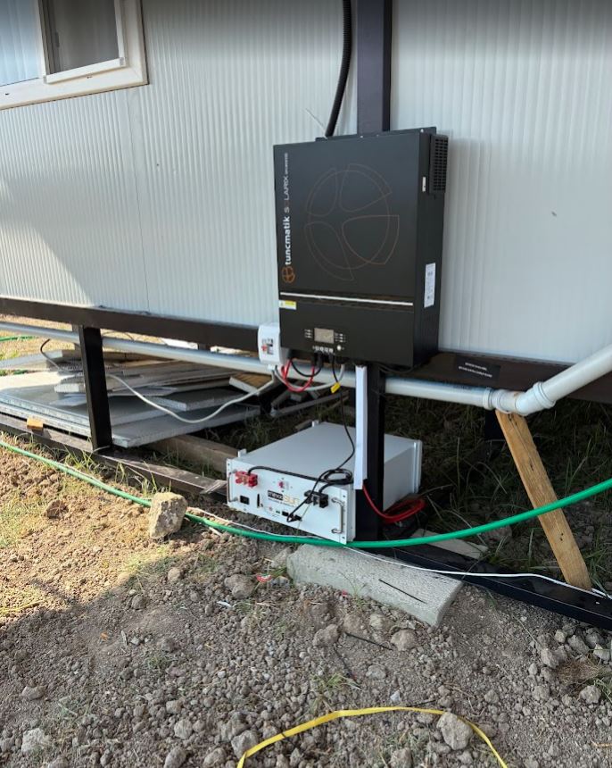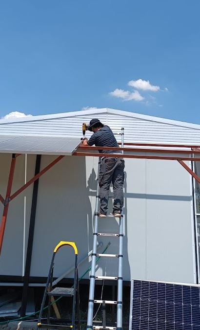 Manisa Osmancalı Köyü’nde Ercan Bey’in bahçe evine kurulan 8 adet 550 W panel, 11 kW inverter ve 5 kWh LiFePO₄ batarya ile yapı tamamen şebekeden bağımsız hale getirildi. Sistem, bahçe evinde gerçek ev konforu sağlayacak güçte tasarlandı.
