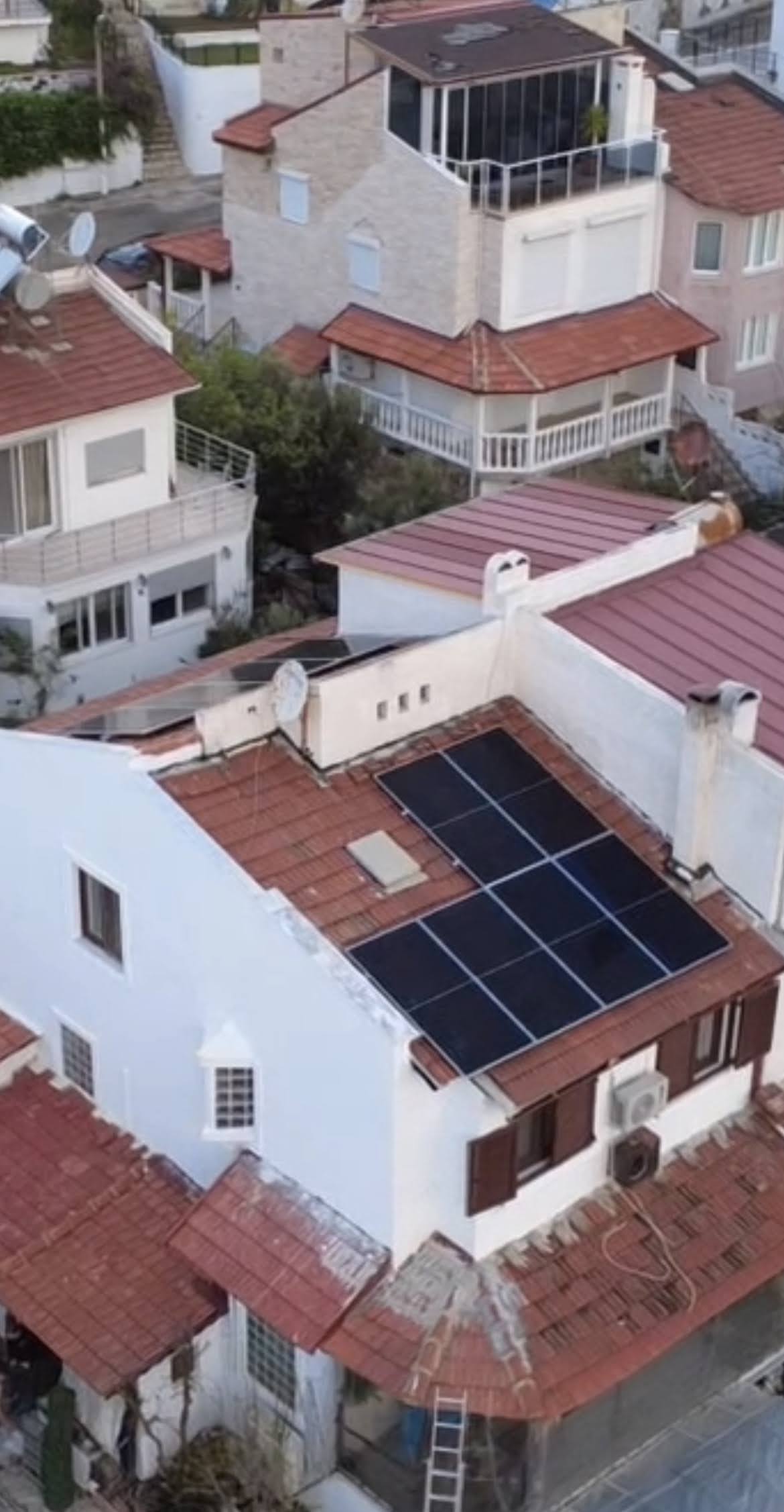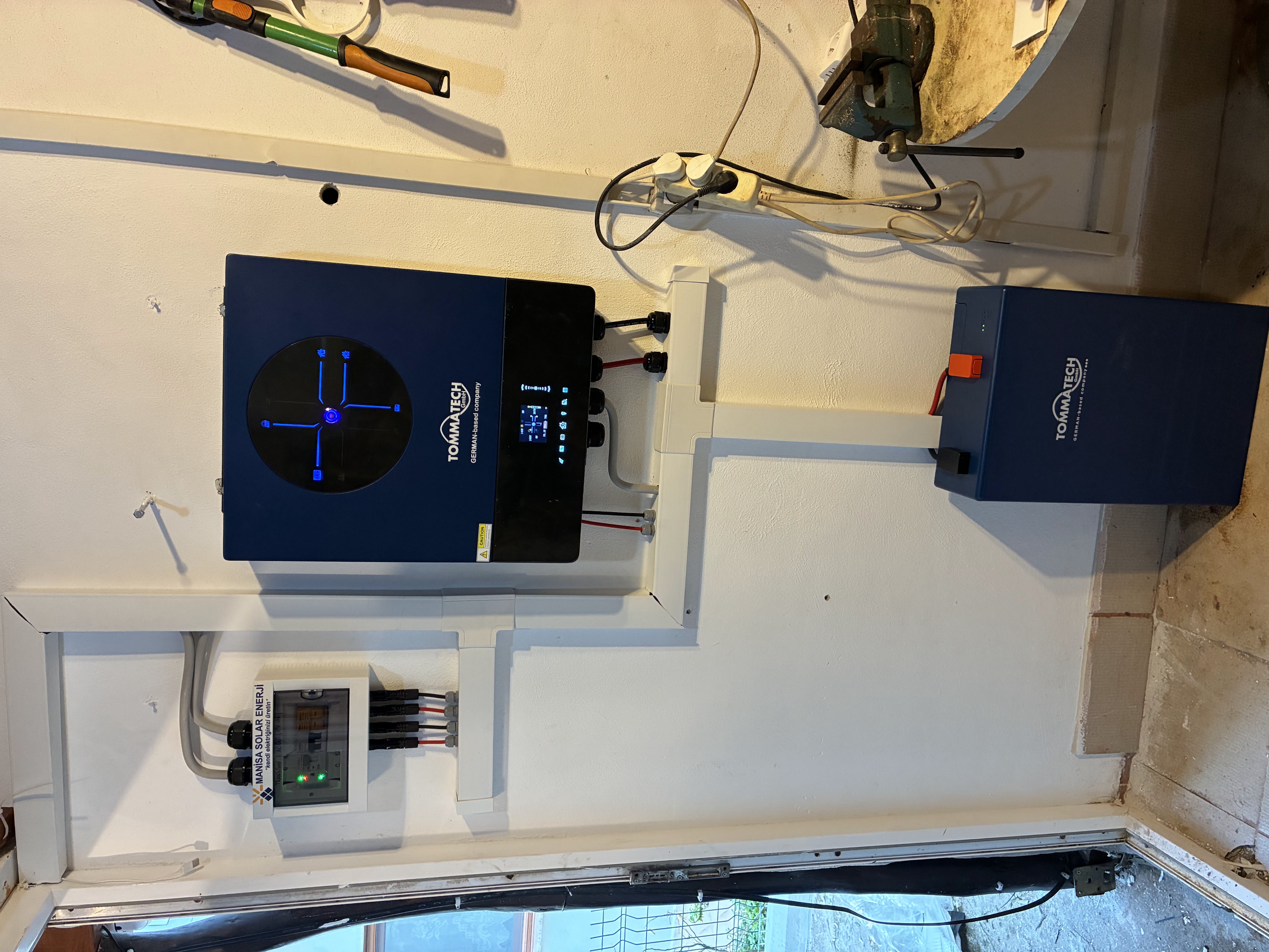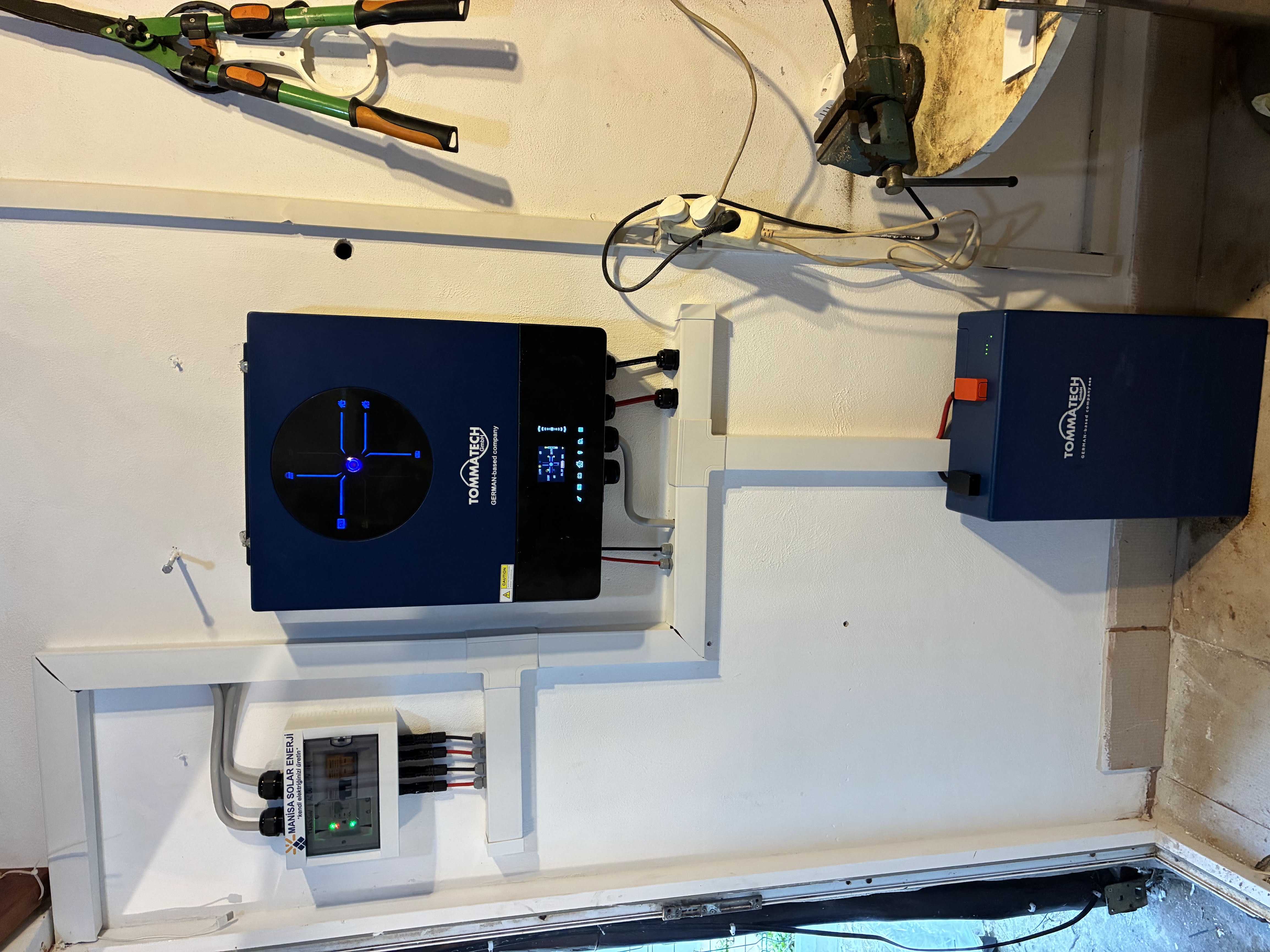 Seferihisar Sığacık’taki bir yazlık için kurduğumuz bu güneş enerjisi sisteminde amaç, gündüz kullanılan elektriğin güneşten karşılanması ve klimaların güneş enerjisiyle çalıştırılmasıydı. Projede 10 adet 600Wp Tommatech panel, 11kW inverter ve 5kW lityum