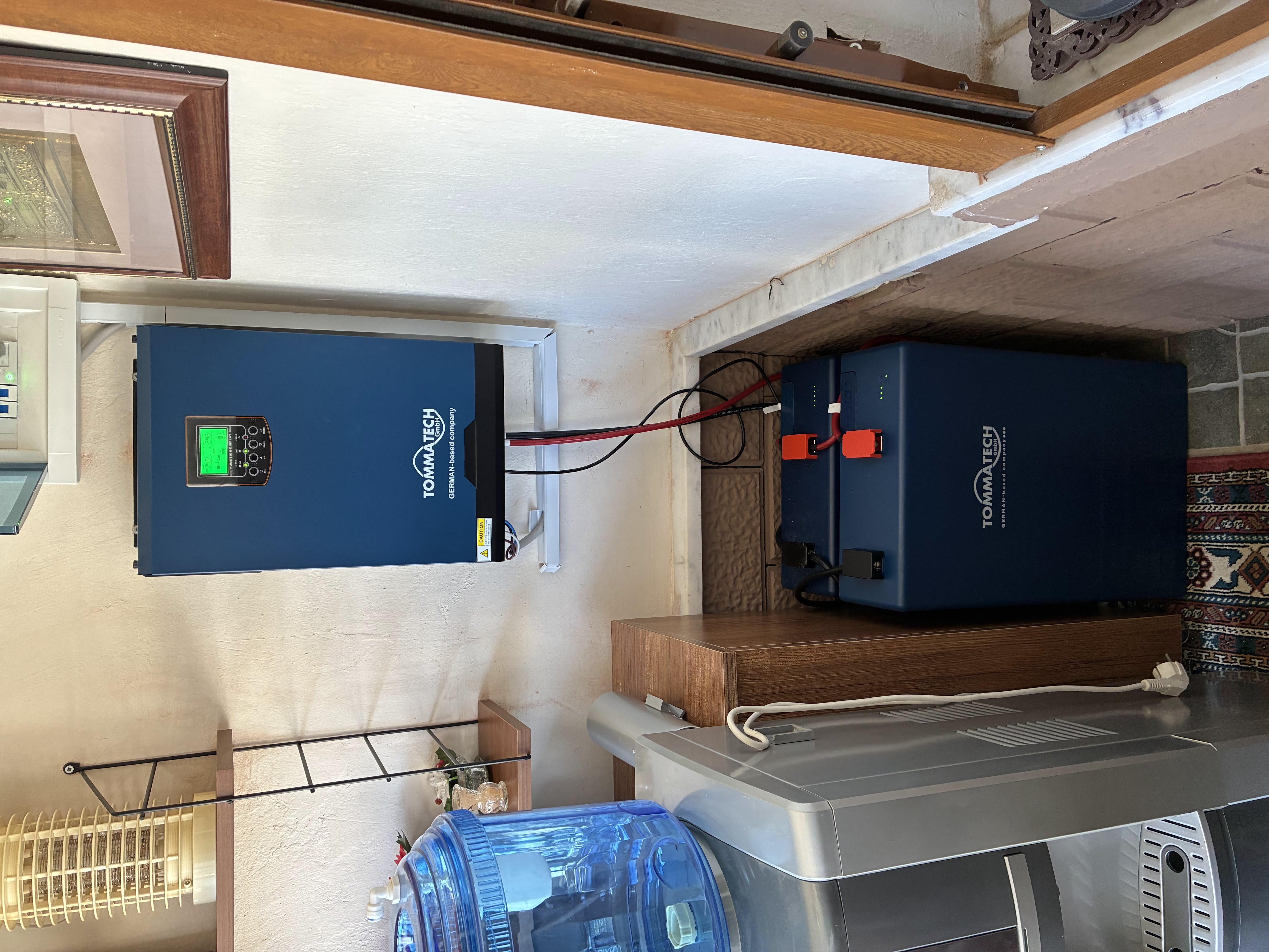 İzmir Torbalı Kırbaş’ta bir konutta güneş enerjili sokak lambaları ve projektörlerle bahçe aydınlatması kuruldu. Ayrıca 5 kW akıllı inverter ve lityum akü ile evin kesintisiz enerji altyapısı güçlendirilerek elektrik kesintilerine karşı güvenli bir sistem